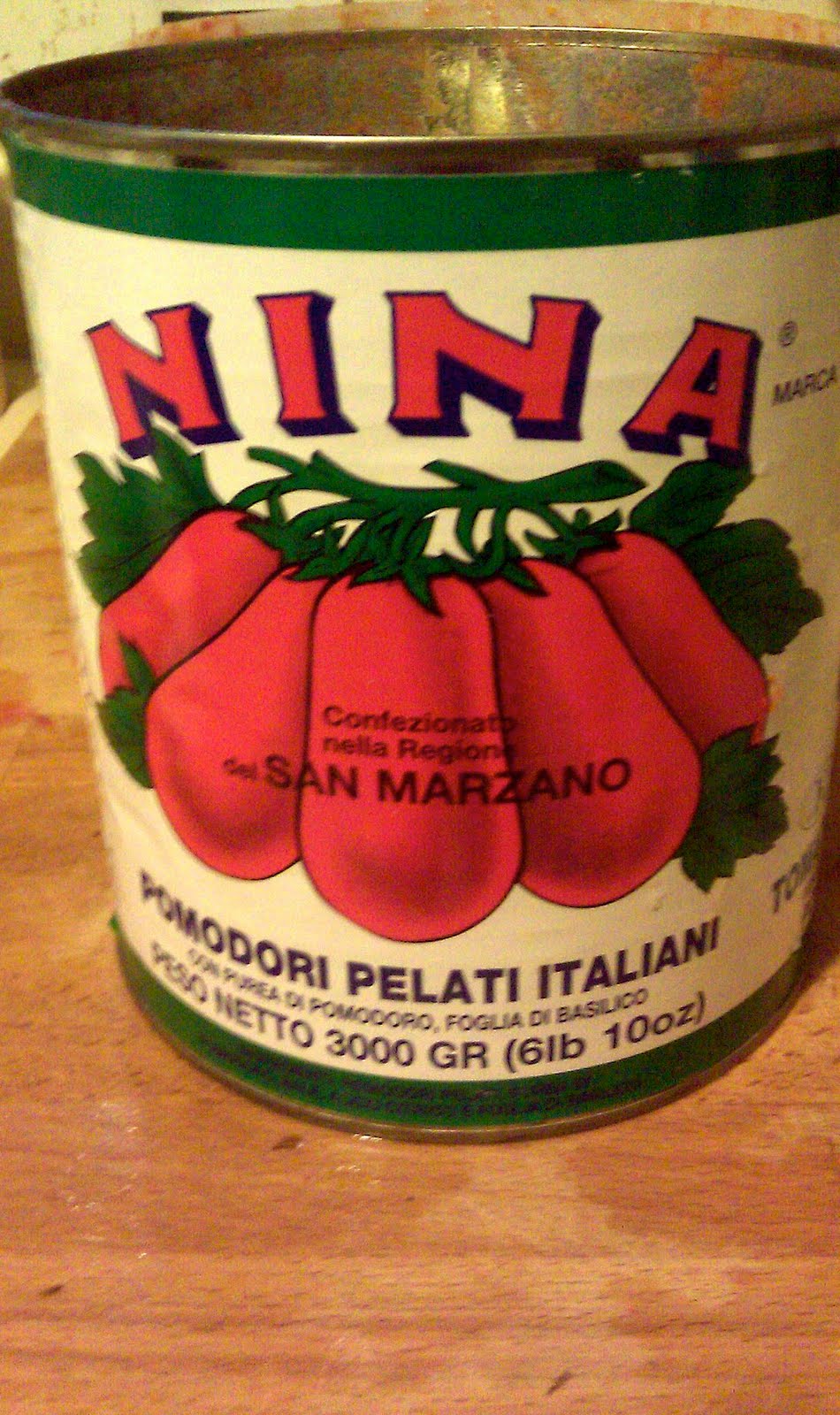 In 99% of my attempts, though, grocers look at me with puzzled expressions and I end up in the "Italian" aisle, loading up my cart with cans of stewed, whole or chopped San Marzano tomatoes. For this batch, I used an entire #10 (industrial sized) can of whole stewed tomatoes. I used my Martha Stewart Pastry cutter to chop them up in the bowl. Nobody ever said you have to use your tools for only the thing they're named after!